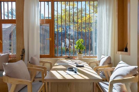 首先工作人员很热情。 服务很到位。 下了订单就联系我了。院子是一个木制建筑物 空间很大。阳光很好。 房间干净卫生 细节也做的很不错。早餐八点到十点 卫生美味。超级好吃。期待下一次和老板喝茶聊天