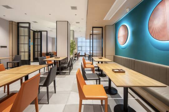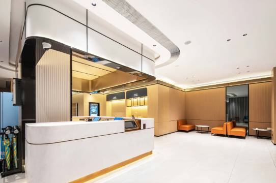 酒店位于长沙市雨花区人民中路王公塘街16号(地铁6号线朝阳村地铁站1号出口) 【周边设施】距离湘雅二医院,步行8分钟。 【旅游景点】邻近五一广场、坡子街、解放西路、IFS国金中心等网红打卡点、车程10分钟,距离橘子洲头风景区20分钟。 【交通】距离长沙火车站,公交805/101路20分钟,距离长沙高铁南站,地铁车程30分钟,距离黄花国际机场,地铁6号线1小时直达。 【风格元素】本店清新风格,以"圆弧"为主要设计元素,选择以蓝绿色,橙色为基调,大色块辅助小色彩的碰撞,搭配多元化的设计元素,衍生出充满设计感的家具装饰。 【配套设施】房间新智能化系统语音声控、机器人送物、停车场、自助洗衣房、自助餐厅、自助储物柜、商务会客区、24H热水、空调和无线网络覆盖、便捷周到的商旅居停服务、是商旅及度假的品质之选。