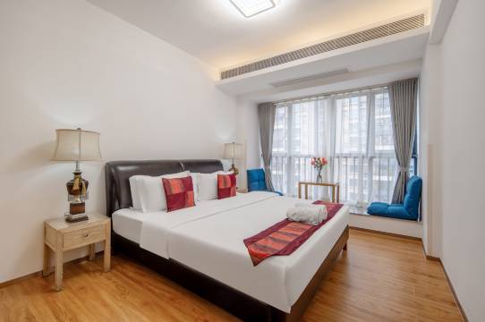 这家公寓是朋友推荐的,适合我们一家四口。也是我使用携程订房这么多年体验最好的一次!服务态度很好,我们需要一些零散的小物件都为我们无偿提供;公寓装修大方简洁,古朴风雅;配套齐全,适合短期居住,也适合长租;周边停车方便,环境优越,卫生整洁。