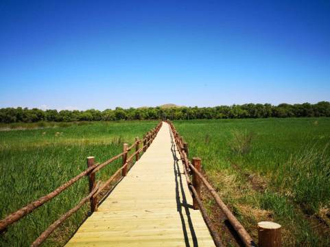 翁牛特旗沙地小镇生态庄园酒店以沙漠古柳景区闻名于世,传说中,沙漠古柳是千年不死、死而千年不倒、倒而千年不朽。生长在大漠中的沙漠古柳,在严酷的环境中有着如此惊人的生命力。与荒漠、蓝天共存,给人无限的震撼,而西拉木伦沙漠古柳则是另一番景象,葱绿富有生机。10月初秋风过后,大片古柳由翠绿转成金黄,与湛蓝的天空,共同筑就了一幅亮丽、神奇的秋色油画,分外夺目灿烂。