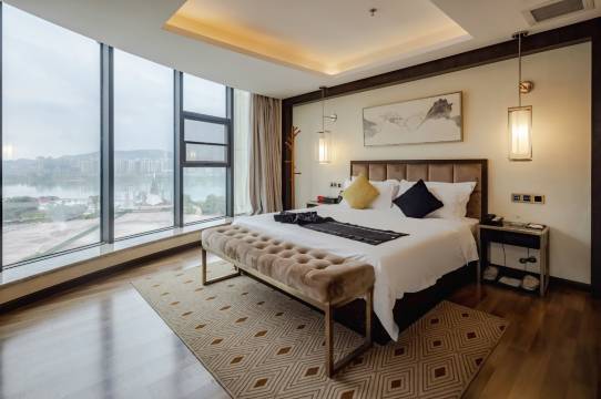 房间很大 酒店挨着嘉陵江边不错 前台服务人员小姐姐也特别好 酒店很干净很大 早餐也不错 还送了我小礼物里面