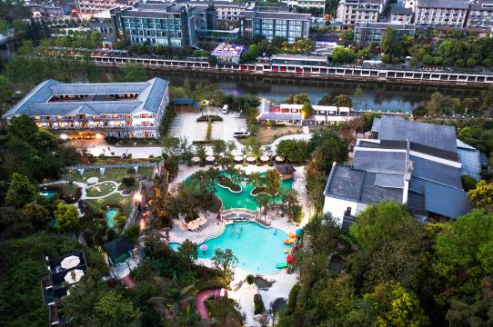 已有600多年历史温泉水中,富含40多种微量元素。大小不同的50多个原生态温泉泡池及功能池,6间独立的木屋温泉,可同时接待400人。