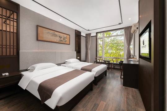 房间中式装修风格,比较舒服,温泉水干净,总体服务还是可以让人认可的,酒店早餐挺丰富的,饭菜也不错,可以可以。
