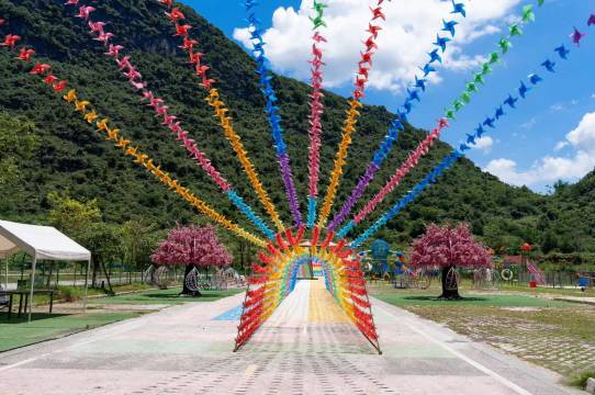 黄姚古镇旅游度假村位于贺州市昭平县黄姚镇。黄姚古镇是一个有九百多年历史文化的明清古镇,地处漓江下游,素有“诗境家园”的“小桂林”之称。镇内600多座古建筑为九宫八卦阵式布局,属岭南风格建筑。 黄姚古镇旅游度假村三面环山,绿树成荫,正对日出,环境优美;黄姚古镇旅游度假村占地202亩,有豪华度假庭院房车区、花园庭院木屋区、房车营位停放区,露营营位区以及御见黄姚花园餐厅、黄姚游乐园、大型停车场、烧烤场、茶室等功能区,是家庭度假,情侣出行,公司聚会、生日派对、房车露营的的理想场所。 黄姚古镇旅游度假距离镇政府、医院、超市、市集及美食街都很近。周边有黄姚古镇、黄姚香谷等大型景区。