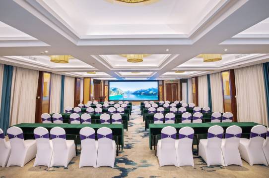 酒店共设大小会议室5个;多功能会议厅可容纳180-200人,并配有现代化的影像、扩音及会议发言系统。同时,商务中心可为您提供传真、上网、打印、票务预订等,让您尽享快捷服务。