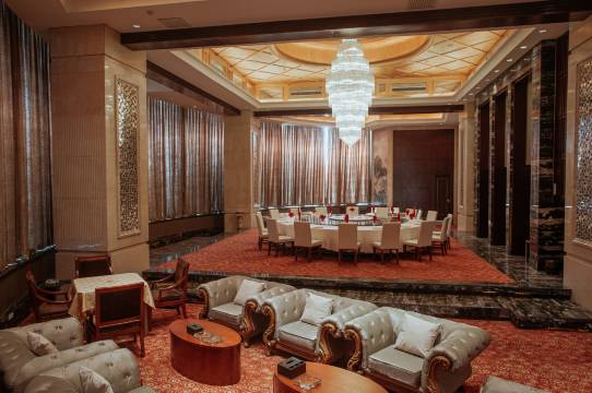 中餐厅荟萃域外佳肴、地方美食;西餐厅、咖啡厅、茶餐厅、自助餐厅,彰显雅致华贵;幽静怡情的风情吧,令您倍感温馨。餐厅内设28间风雅各异的包房以及三个豪华宴会厅,可满足您对宴会的多样需求。