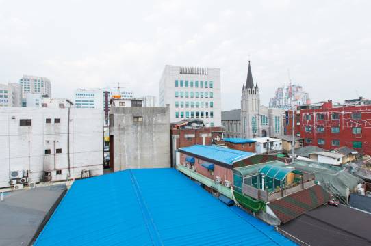 位置真的很方面,而且在东大门附近,不会怕没有东西吃。但是只有楼梯,有行李的可能要考虑清楚。酒店是在小巷里,晚上没什么人经过。