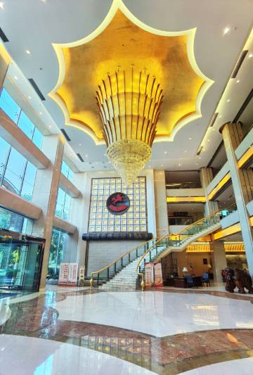 酒店占地宽阔,外观气派,车位充足,房间宽敞,设施齐备,4部电梯,上下顺畅。保安师傅引导停车积极热情。早餐服务人员多,就餐餐位多,菜品选择多,补充供应足,收拾打理快,就餐体验佳。