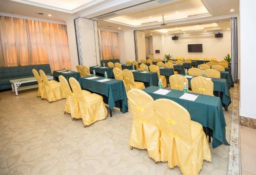 酒店楼高12层,设有空中花园露天茶吧,可品夜茶,赏音乐喷泉;拥有豪华客房百余间,配套有大型中餐、茶楼、会议室、酒庄、商超及停车场,可承接大型宴会、婚宴、聚餐、年会、会议等,是商旅出行的不错之选。