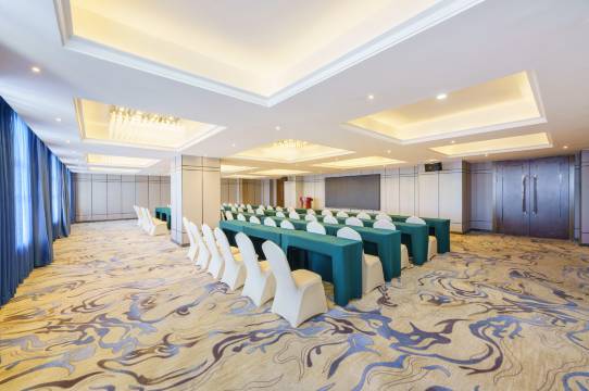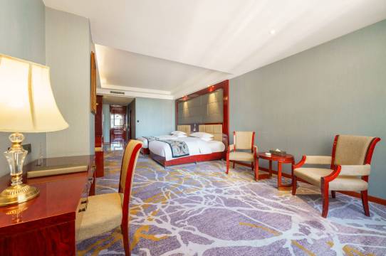 酒店总建筑面积约15000平方米,客房楼共5层,拥有百余套豪华商务客房、地中海式客房及各类客房,地中海客房整体房间配色,壁纸、窗帘、地毯相得益彰,凸显地中海风格的别致、格调。酒店配置均为国际、国内著名品牌,行政、商务楼层卫生间洁具为国际品牌科勒,地中海楼层为全智能马桶带有清洗烘干、调温消毒的智能功能。