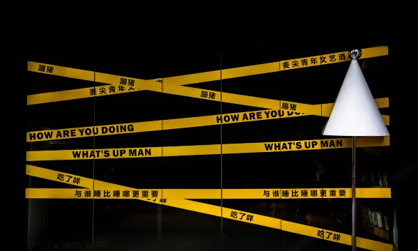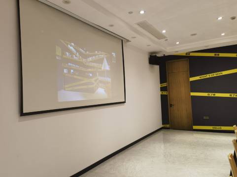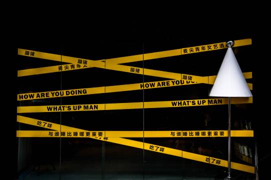 晚上11点多到入住需要排队,前台空间比较小只有一位工作人员。酒店风格与“艺术”二字紧密贴合,均是警戒线结合书本的装饰,独具一格。房间以黄色和绀色为主色调,营造出一种舒适的氛围感。