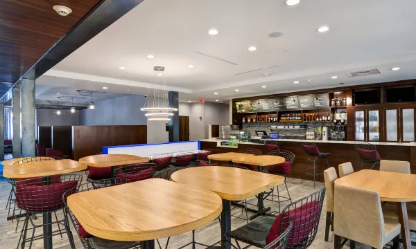 您可以到服务长岛艾斯利普法院复合式万怡酒店住客的The Bistro享用美餐;也可以去杂货店/便利店逛逛。全套早餐(收费)供应时间为:周一至周五 06:30 至 09:30,周末 07:00 至 10:00。