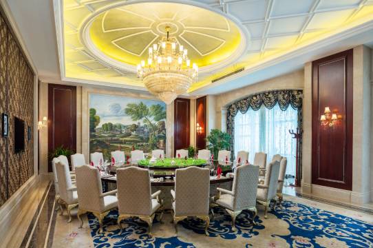 酒店以粤菜为主、川菜、湘菜、官府菜、徽菜、陕菜为辅,各类包间29个,中式零点餐厅,可容纳120位;提供西餐、中餐、日韩料理、东南亚美食,独立自助餐区域,餐位136个。