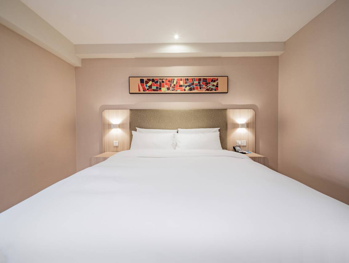 非常适合情侣出来休息, 房间干净舒服, 床也很软。 掀开床单看是还垫了床垫的, 像家里的一样。 这里点外卖也很方便, 会有小机器人配送上来, 服务也很好, 很赶紧卫生, 不用担心会不干净什么的, 华住会主动让很放心的。