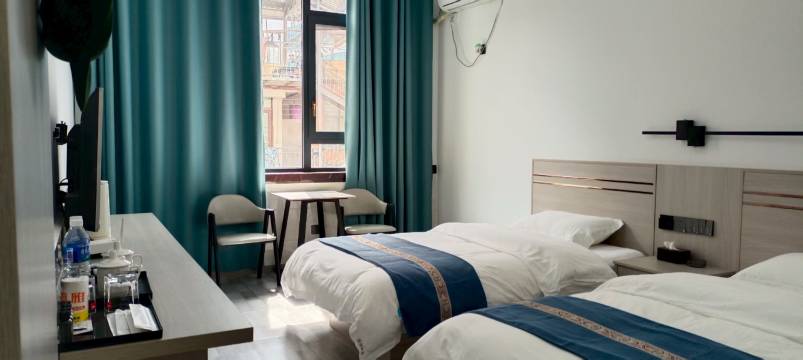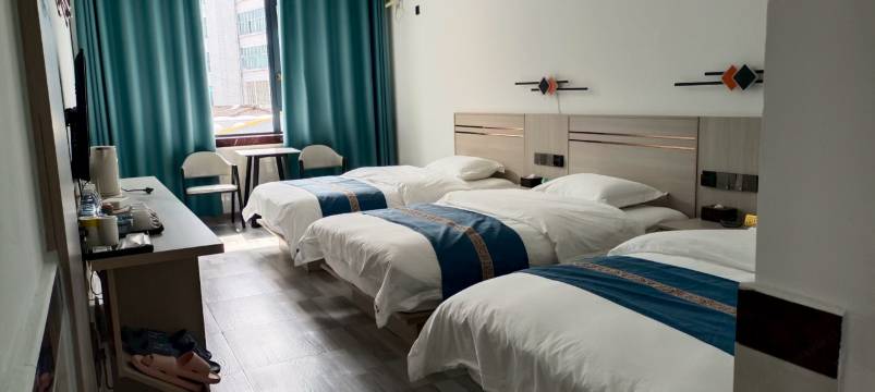 酒店是全新装修的,设施齐全,房间干净整洁,前台服务态度热情周到,价格实惠,安静,浴室冷热水充足水量大,累了一天足足冲了半小时热水澡,三楼还有茶室客人可以自行泡茶品茶,不错不错……