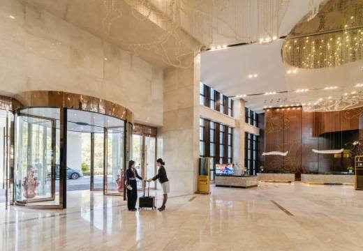 酒店1楼的大宴会厅为无柱式设计,面积达680平米,可同时容纳420人宾客,是大型商务会议、喜结连理和庆生、祝寿的上选。