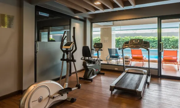 酒店设有健身中心,配备全新器材和优质器械。此外,还有游泳池和乒乓球桌。酒店提供嘟嘟车接送服务,非常方便。