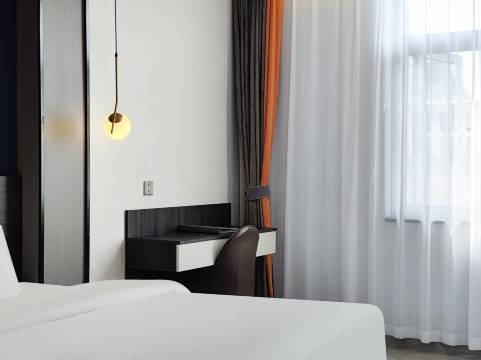 酒店地理位置优越,交通便利。设有各式房间,干净卫生,通风透光,优质的服务,简约的设计风格,是繁忙的商务客人及休闲旅游客人温暖舒适的理想家园。