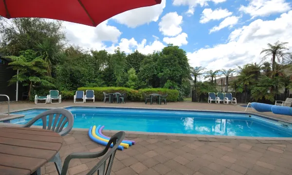 在酒店度过愉快舒适的两晚。房间宽敞,两室的格局足够放行李,非常适合亲子出行,尤其带两娃的家庭。房间里设施齐全,餐具很新,可以自己做饭烧水。卫生间升级智能马桶,体验感很不错。酒店内部空间很大,每间房独立隔开可以停车,很适合自驾出行。庭院里有公共加热泳池,水温舒适清洁。酒店特别的亮点是每间房都有独立的泡温泉的池子,私密性很强。池子旁有冷热水龙头,可以自己调节水温。到罗托鲁亚体验温泉是必做项目,入住此酒店就可以在自己房间里泡温泉,舒适又方便。推荐入住!