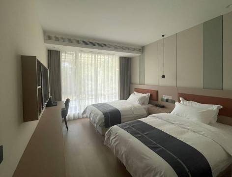 新装修不久的酒店,色彩搭配简洁时尚,奶咖色窗帘搭配大阳光窗很协调。位置很好,窗外就是滨江公园,小河边绿绿葱葱的,空气自然清新。有送早餐。就是房间小了点,两个人住略显拥挤。