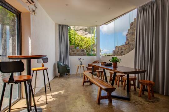 珠海桂山道禾璞树海岛精品民宿地处美丽的珠海桂山岛,以院内一颗抱巨石的大树得名,从珠海市区出发航程约40分钟。岛上绿树成荫、奇石嶙峋,蔚蓝色的大海、清新的空气、宜人的风景,给人一种宽阔无忧、舒畅愉悦的感觉。