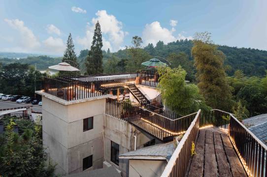 民宿占地4000㎡,由三幢民居改造,依山就势分布,分别为“一念花开”丶“无香”丶“慈悲喜舍”。屋顶以玻璃天桥栈道串联。500平米空中观景阳台错落分布,俯仰之间,穿越千年。