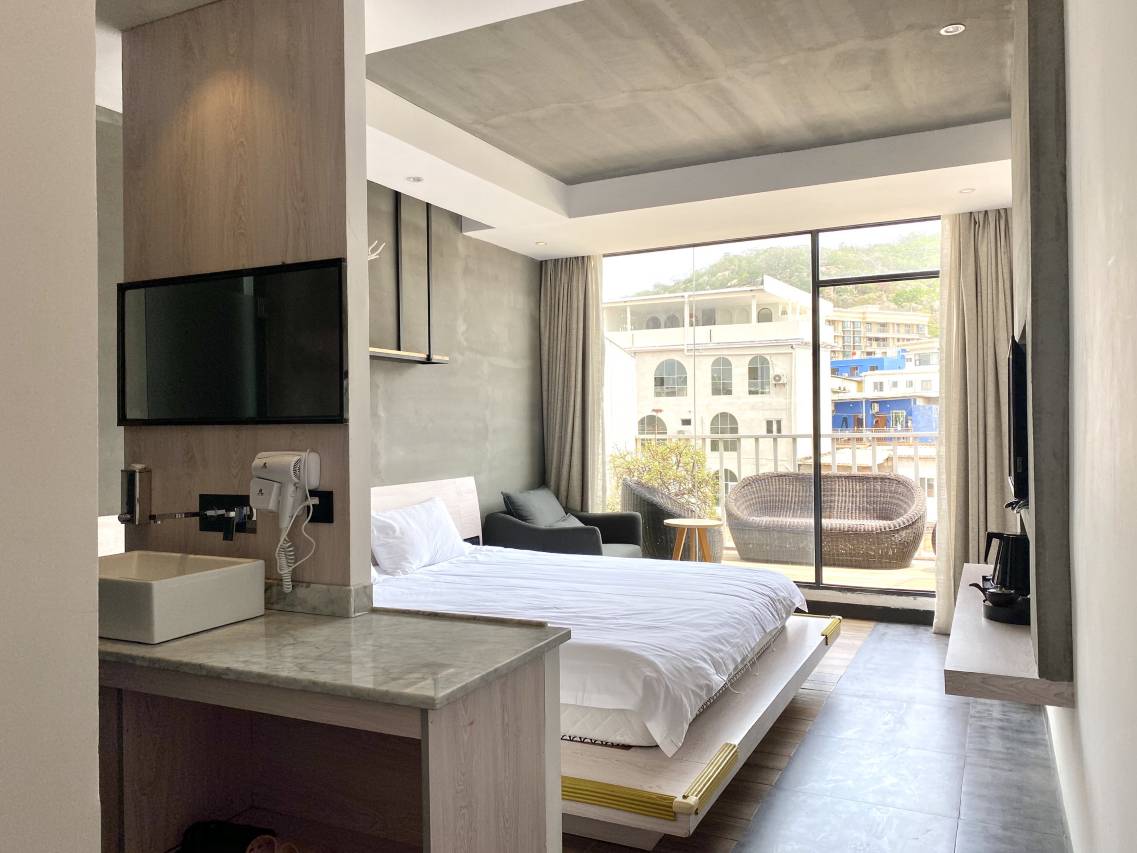 阳光大床房早上起来阳光很充足,视野好,卫生干净,服务贴心,离海边也很近
