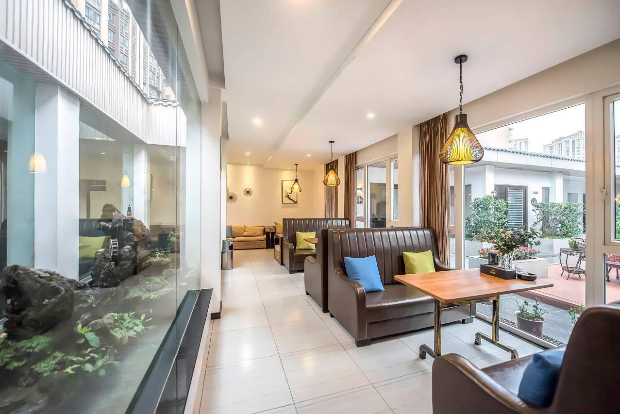 酒店地处内江市东兴区主城区大千路与北环路交汇处,内江新中医院斜对面;毗邻万达广场,步行仅需约10分钟;距汽车客运站约5分钟车程、距内江北站、火车站约15分钟车程,同时附近有内江知名景点-大千园,您可尽情感受张大千先生的泼墨绘画和钢筋书法,地理位置优越,交通便利,集吃住行游购娱一体,是您家庭出游、商务出行的理想之选。 客房宽敞舒适、风格简约,内饰清新雅致,所有客房明窗,采光通风效果良好,配套设施完善,隔音措施到位、床铺柔软适中,为您提供良好的睡眠环境。四层茶坊环境优雅、禅意浓厚,是您与朋友小聚、商务休闲的理想之地,我们秉承“专业品质大众消费”的宗旨,为您带来专业的服务和家的温馨!