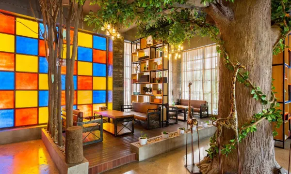 一踏入酒店大堂,工业风的独特魅力就扑面而来。裸露的水泥梁柱、复古的金属管道,搭配上极具艺术感的工业风灯具,每一处细节都拿捏得死死的,氛围感直接拉满。