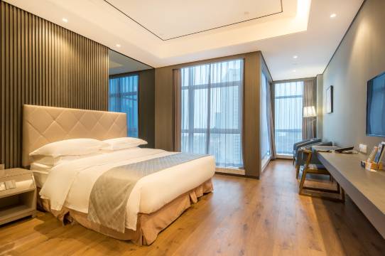 这家酒店干净清爽空间大,视野好,可以欣赏湖光山色,早餐丰富可口,性价比绝佳。楼下是带游乐场的大广场、大商业体和餐饮一条街,距离几个著名景点也不远,值得推荐!
