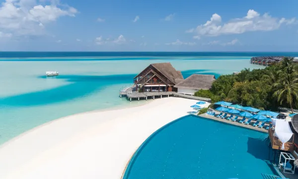 马尔代夫笛古岛安纳塔拉度假酒店位于笛谷岛,紧邻海滩,距离伯度胡拉海滩仅咫尺之遥,距离Dhigufinolhu 海滩有 3 分钟步行路程。 此海滩度假村距离古莉沙海滩 0.1 英里(0.1 公里),距离双鱼岛海滩 0.1 英里(0.2 公里)。