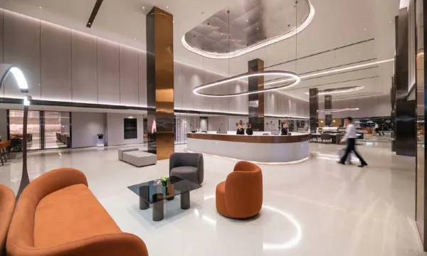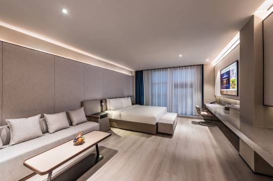 酒店由国外著名设计师设计,整体装饰时尚现代。客房简约精致,房内隔音系统由清华声学所研制,可使宾客尽享一夜酣眠。房间设备:金可儿零压床垫、POLA洗手液、沐浴露、65寸飞利浦电视机、电动窗帘、小度智能音箱、机器人送餐服务等。