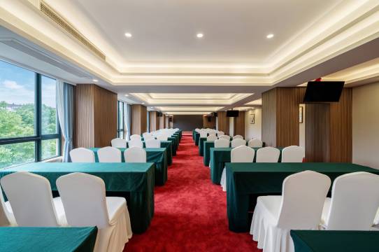 酒店设有3个不同规格的会议中心,配有先进的多媒体、投影及音响视频设施,三楼锦绣厅(多功能宴会厅)之场地豪华气派,整个大厅面积近500平方米,层高6米、局部层高4米,全场无柱式设计,并配有LED大屏,大厅最多可容纳30桌喜庆宴席,宴会厅旁配有新人专用化妆间,为新人们营造温馨舒适、便捷的私密休息空间;同时,酒店拥有专职贴心的一站式婚宴服务、合理的价格更是您举办婚宴理想的场地。