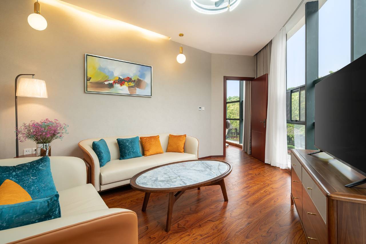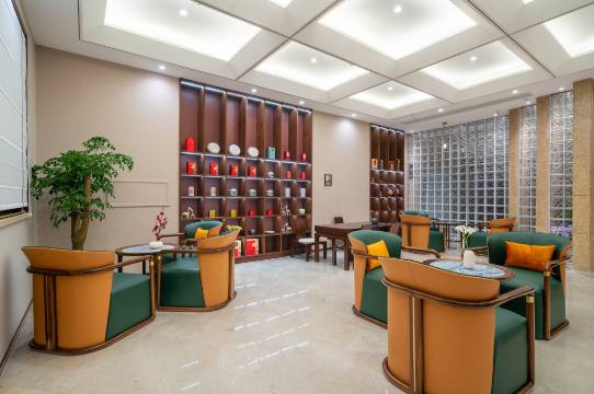 酒店拥有装潢典雅,宽敞舒适的各类客房,驻足窗前,聆听着知也禅寺的钟声,眺望着山间田园般的秀丽美景,“富林湖”一座座水上屋脊,如画卷般映入眼帘;大自然的清香夹着大学城的缕缕书卷味,是都市里最幽静的桃花源。