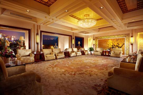 本店集住宿、餐饮、会议、康乐、会展于一体,宾馆分别由国宾楼、贵宾楼、嘉宾楼、宴宾楼等建筑群落组成,拥有各类客房,豪华典雅的房型。