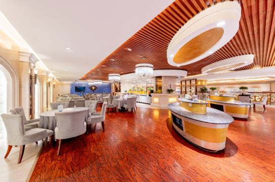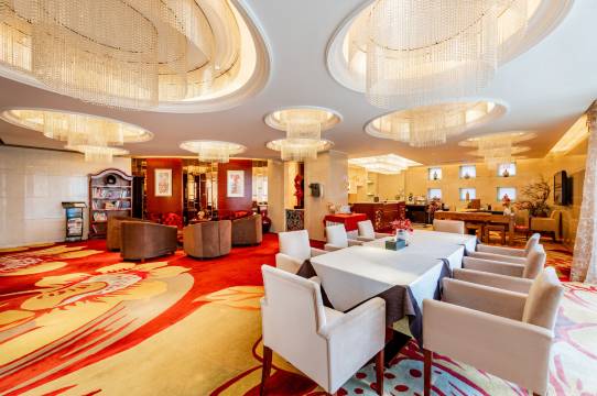 这家酒店太惊艳啦!一进大堂,华丽的水晶吊灯、精致的金色装饰,瞬间让人感受到高端大气。大理石地面光洁如镜,柱子和栏杆的设计也很有质感,还有特色摆件点缀,氛围超棒。办理入住时,工作人员服务也很热情周到,光看大堂就超期待房间了,推荐大家来体验~