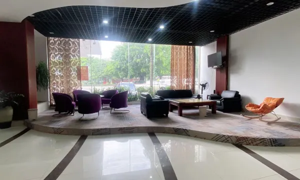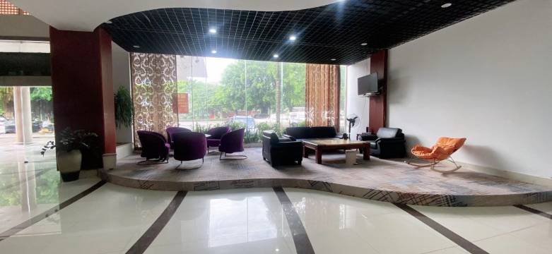 酒店一楼是集金融、通信、游戏娱乐等于一体的商业中心。酒店内设有大、中型商务会议室2个,可以容纳200-300人开会。餐饮占地面积3000多平方米,以海鲜、野味等高档粤菜为主,川湘菜为辅。餐厅配置有高级豪华包厢15个,大型豪华宴会厅2个、中型宴会厅2个,可同时接待800-1000人宴请用餐,是市政府和企业定点的接待单位。