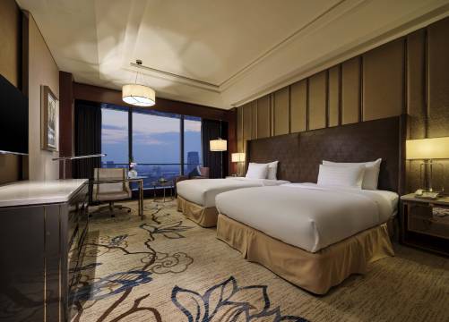 酒店拥有各类客房三百余间(套),风格各异的餐厅8个,餐位1500余个,700平米无柱宴会厅,康乐设施一应俱全。艺术与珍宝交相辉映,华贵与温馨相得益彰。