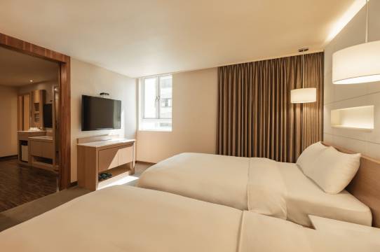 连假临时决定去高雄玩,看到康桥商旅三多商圈馆还有空房,事先查看评价不错离市区近,订了2晚含早餐房,入住时柜台人员告知有点心区及晚点心,真的是很超值的饭店,每位服务人员的态度也都非常好,推荐给大家👍
