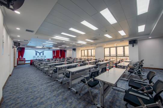 酒店配备150个小车车位,10个大巴车位。可容纳100人的中型会议室,会议室配备10平米大小的P2高清LED屏。酒店配备100人自助早餐厅,可跟进客户需求承接中晚餐晚餐、自助餐。
