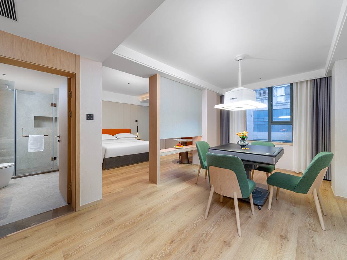 房间干净整洁,床品舒适,隔音效果好。浴室水压充足,还配备了智能马桶和品牌洗护用品。前台接待非常热情,办理入住高效,客房服务响应迅速,员工全程微笑服务,体验很棒!