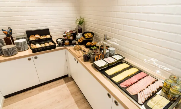 自助早餐非常棒,有美味的面包卷和丰富的配料,还有鹰嘴豆泥等等。咖啡也非常好喝。