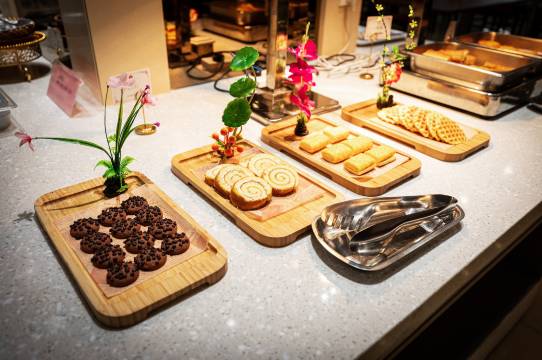 酒店餐饮部设有欧式风格宴会厅八间及简约的时尚自助餐厅,能同时容纳300人的就餐,环境温馨优雅。酒店餐饮以“鲁菜之乡”的福山菜为主打,酒店名厨通过上等的选料、精湛的技艺,将鲁菜的火上功夫发挥的淋漓尽致,把独特的咸、鲜、脆、嫩风味呈现在您的眼前。