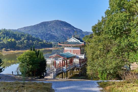 九鲤湖禧梦山庄藏于九鲤湖景区。仙游九鲤湖是国家AAAA级景区,中国祈梦文化发源地。九鲤湖以湖、洞、瀑、石四奇着称,尤以飞瀑为最,素有“九鲤飞瀑天下奇”之美誉。禧梦山庄依托九鲤湖景区的天然地理优势,加之本身配套设施完善,是一处集观光、休闲度假、餐饮、住宿、会议为一体的综合型度假山庄。是自驾游、度假养生、集团拓展、亲近自然,放松心情理想去处!禧梦山庄是一栋传统的三合院式建筑,青瓦白墙颇具江南韵味,主楼与东楼、西楼呈“品”字型分布,与山间绿树浑然一体,毫无违和之感;主楼四层,东西副楼各两层,依傍在青山脚下,景色怡人。山庄卧室内色系淡雅,窗明几净,窗外不远处山峦交叠,清晨轻启窗帘,卧床可见山顶云雾缭绕,宛若蓬莱仙境。深夜,山林寂静但闻鸟鸣深树里。