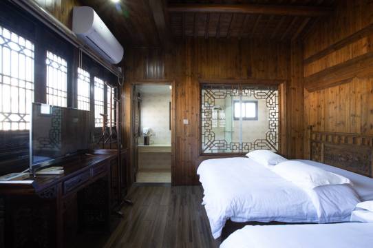 房子外观古色古香,房间也很大,床是1.5米的双床,对家庭出游的非常友好,就是置物的地方有点少,建议增加床尾塌既可以坐也可以放衣服,总的来说很满意,会推荐给朋友。