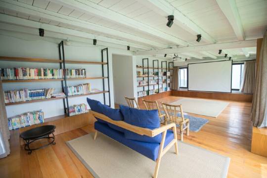 云和一双人民宿室内公共区域分别设有:一楼有围炉夜话轻乐酒吧;二楼有日式风格阅览数;三楼有茶室;顶层有影音室和户外小型高尔夫球场。