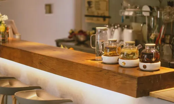 从细节服务上也去看得出精品的追求(对的,精品是指服务还不是什么小米电器和白色秋千!),登山杖、雨衣、按摩椅,都是登黄山需要的;甚至有个茶室供咱们牛马晚上加班。