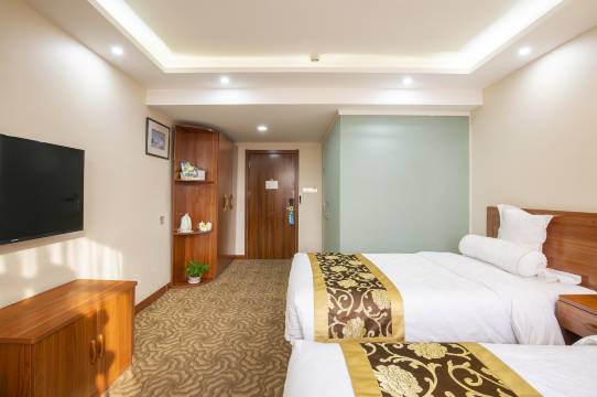 酒店在2008年被评为绿色旅游饭店,设计豪华,时尚典雅,客房采用进口羽绒床垫,拥有荞麦,太空记忆,决明子,银杏叶,薰衣草,金银花六种枕头可供客人选择;房内配备42寸液晶电视,24小时中央空调。
