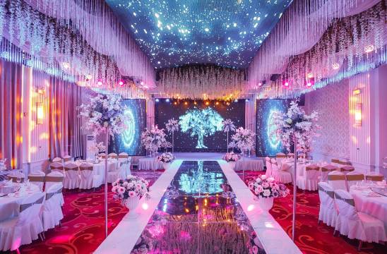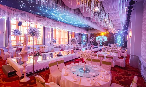 沈阳民航宾馆中餐厅经营各类中式菜品,由国家特级厨师主理,为您准备了享誉盛名的辽、粤、川等菜式,餐厅设有各具特色的豪华包房。酒店拥有288平方米无柱式宴会厅,可承办22桌-50桌婚宴,超大LED显示屏,先进的影音设备,拥有独立停车场。婚庆公司提供婚宴一条龙服务,设施齐全,专业周到的待客服务,让您有宾至如归的感觉。