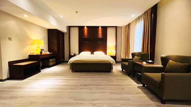 客房设施特别温暖,小度管家管理屋内所有灯照明及窗帘开关,投影大屏幕,淋浴室内特别设置了座台方便老人的不便,更温心的是纯净水烧水器,在我住过的所有宾馆中都没有,只是个简易烧水壶很不卫生安全。早餐也很丰富有中西餐。携程中介绍广告有待更新,高德地图导行也需更新(导行到消防通道及步行)。大厅经理服务热情周到。总之天水皇城国际饭店值得推荐和学习。